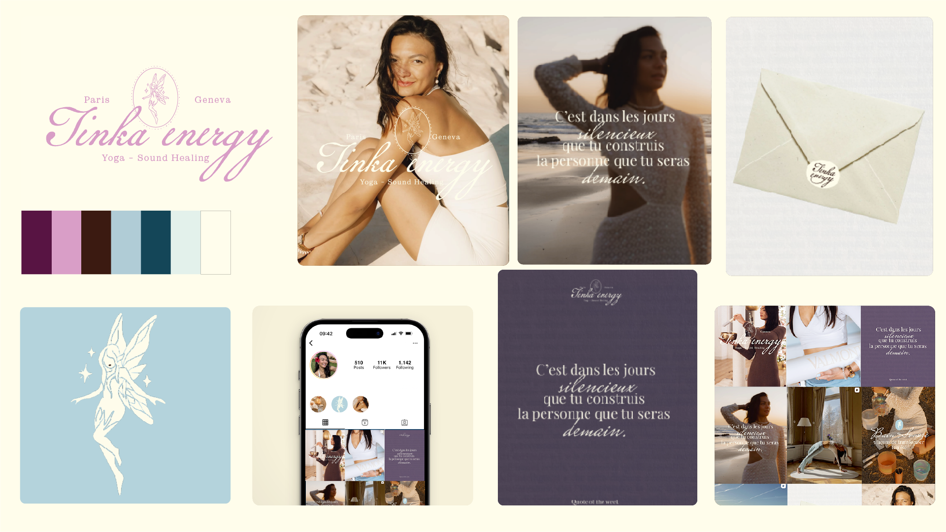 Tinka Energy ce sont des cours de Yoga et sound healing entre Paris et Genève. Elle a fait appel à nous pour créer son identité visuelle. Nous l’avons accompagné dans la création de son identité visuelle avec pour plateforme principale un compte Instagram.